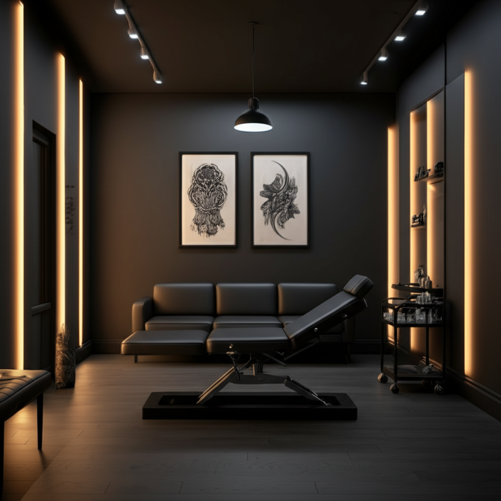 El proceso de tatuaje se realiza en nuestro estudio limpio y cómodo con atención al detalle y cuidado.